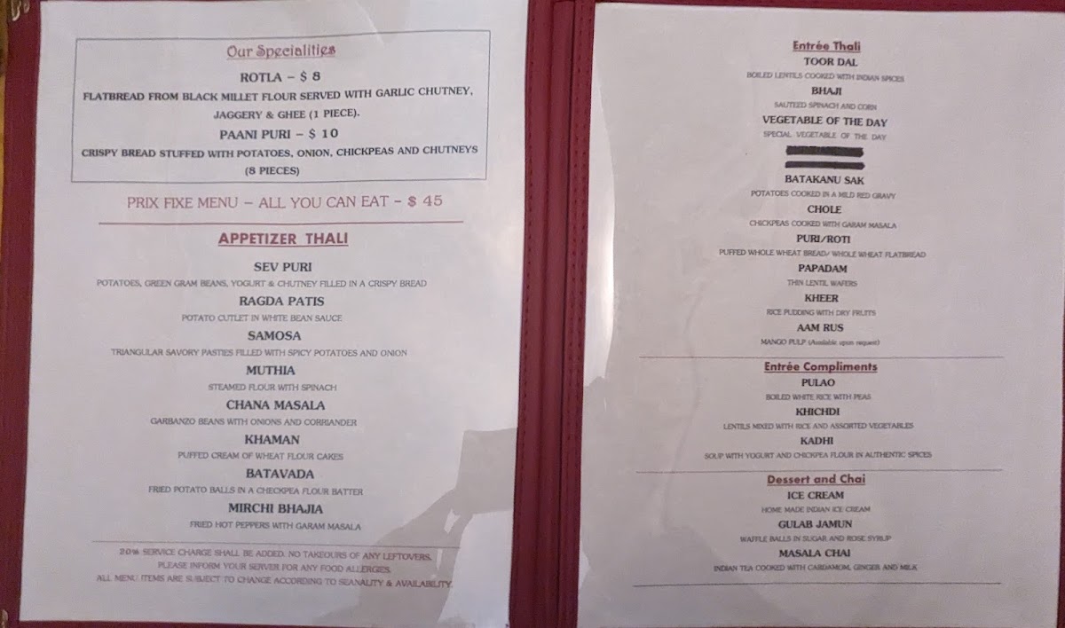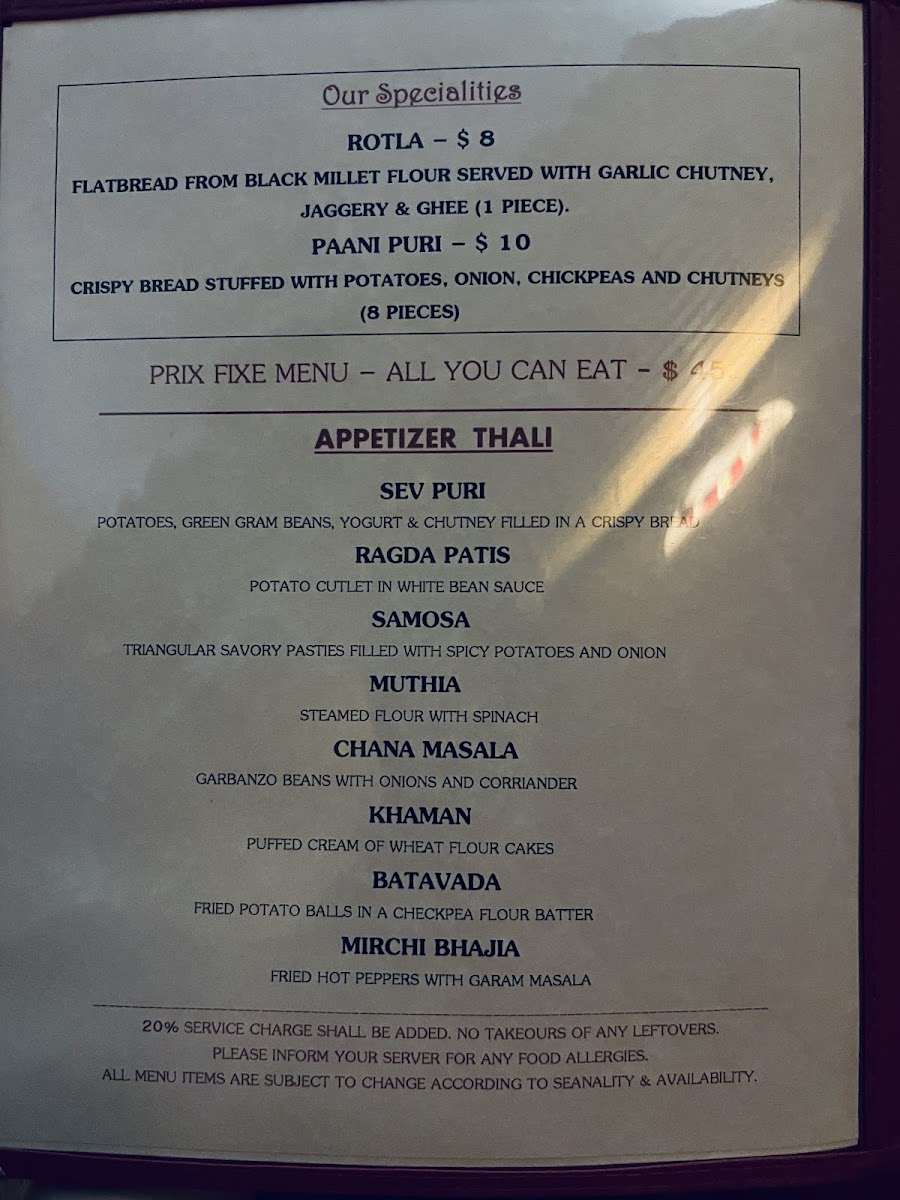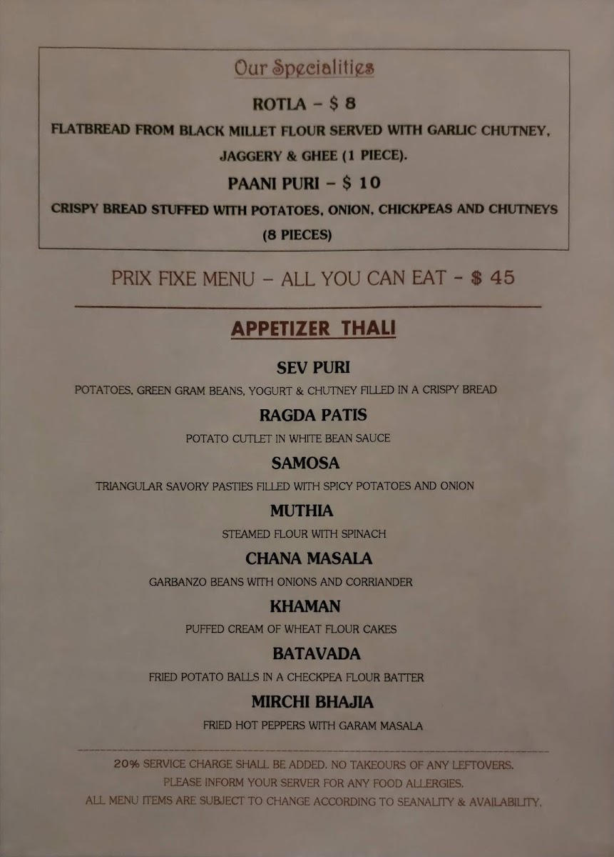 The restaurant is particularly famous for its all-you-can-eat thali, allowing diners to indulge in a variety of vegetarian dishes that showcase the richness of Indian cuisine. Customers rave about the Gujarati Thali, where every bite resonates with the warmth of home-cooked meals — think soft chapatis, flavorful curries, and an array of tantalizing appetizers. The diverse menu features a range of beverages too, from refreshing Mango Lassi to a delightful mix of juices like Guava and Cranberry, which pair perfectly with your meal.